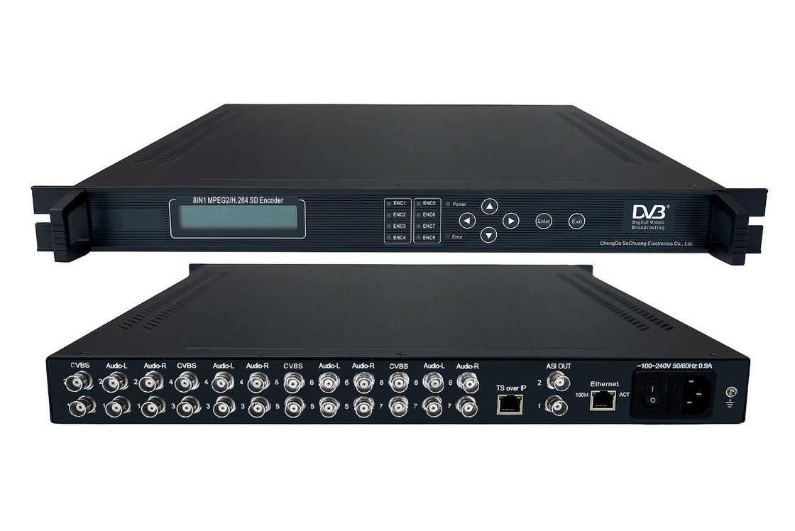 FL-1303 SD8-канальный MPEG-2/H.264 кодер имеет 8 каналов аналогового композитного видео и 8 пар небалансного аудио (моно или стерео) входов, поддерживая кодирование видео MPEG-2/H.264 и аудио MPEG-1, для генерации транспортного потока DVB (TS/ASI) и MPTS (TS по IP) на выходе. Он использует чипсет Magnum, поддерживающий низкий битрейт. Этот кодер подходит для 1U стойки и обеспечивает управление с передней панели LCD и управление NMS (Network Management Software). Его высокоинтегрированный и экономичный дизайн делает его широко используемым в различных системах цифрового распространения, таких как цифровая головная станция кабельного телевидения, спутниковое цифровое телевещание и наземное цифровое телевидение и т. д.