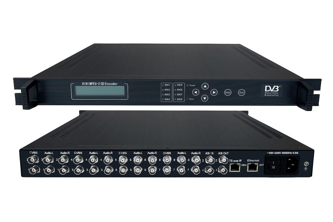 FL-1808 8IN1 MPEG-2 SD Encoder поддерживает кодирование SD MPEG-2 видео и MPEG-1 аудио. Он имеет 8×CVBS видео, 8 пар небалансного аудио и 1×ASI (BNC (MUX)) входных интерфейсов, и может мультиплексировать входной сигнал (TS) для генерации DVB транспортного потока (TS/ASI) и IP (TS over UDP) выхода. Энкодер подходит для 1U стойки и может быть настроен с помощью ЖК-дисплея на передней панели и NMS (программное обеспечение сетевого управления). Его высокоинтегрированный и экономичный дизайн делает его широко используемым в различных системах цифрового распространения, таких как цифровая головная станция кабельного телевидения, спутниковое цифровое телевещание и наземное цифровое телевидение и т. д.